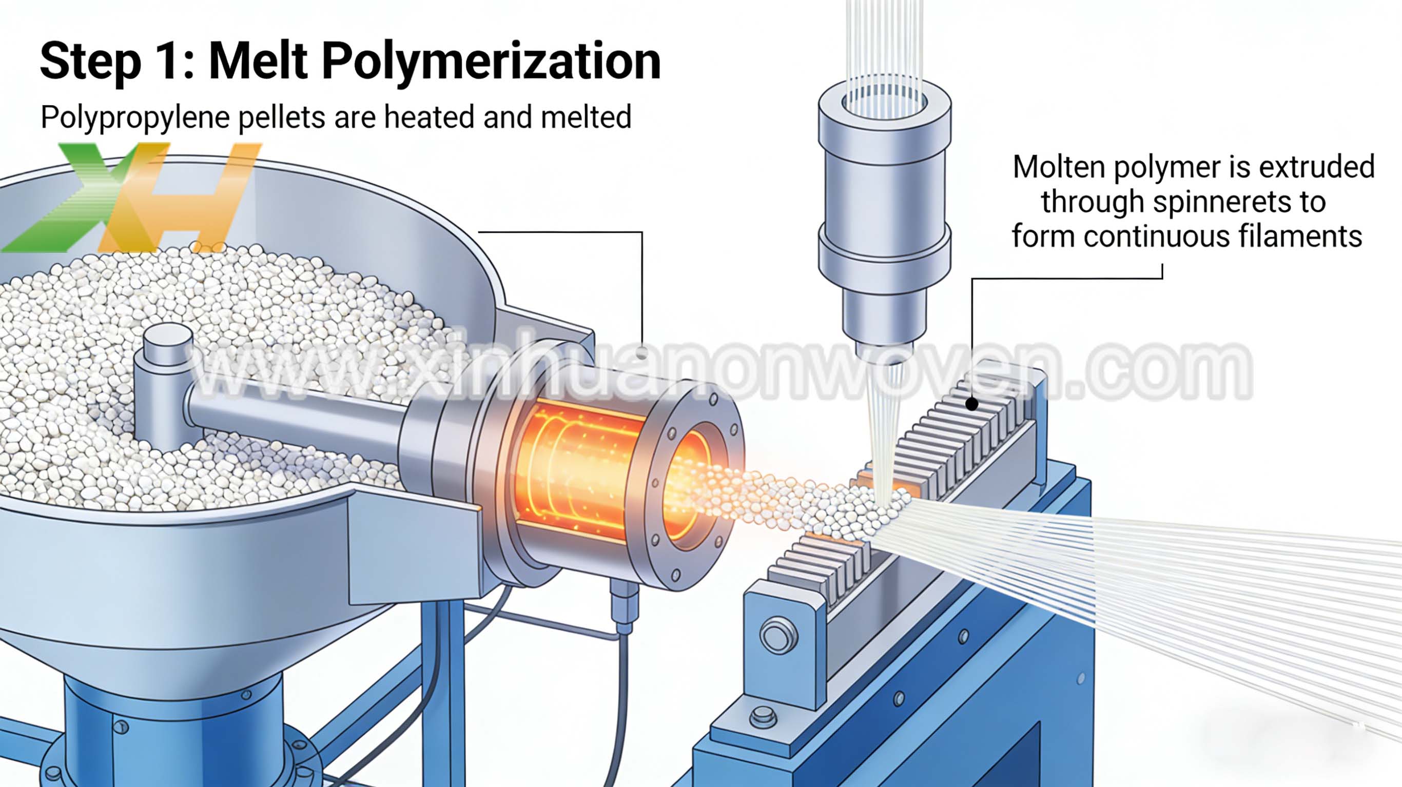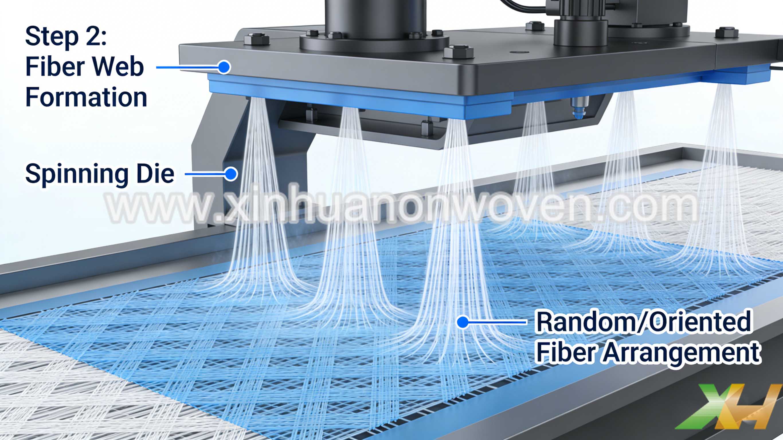 לאחר שהפוליפרופילן עבר התכה ואחול, הוא עובר לשלב יצירת הסיבים. במהלך שלב זה, הפוליפרופילן המותך נדחף דרך ספינרט - התקן מחורר בפתחים דקים רבים - כדי לטוות סיבים ארוכים ורציפים. לאחר מכן, סיבים אלה מתקררים ומתמצקים, ובכך יוצרים את הסיבים. השלב הקריטי הבא הוא יצירת רשת, שבו הסיבים הטווים מונחים ליצירת מבנה דמוי רשת; בהתאם לדרישות הביצועים הספציפיות של המוצר הסופי, ניתן לסדר סיבים אלה בתבנית אקראית או מכוונת. תהליך יצירת הרשת יכול להתבצע באמצעות שיטות שונות, כגון טכניקות הנחת אוויר או קרדינג.