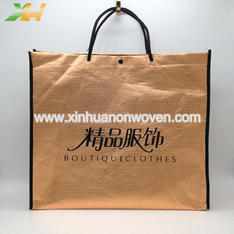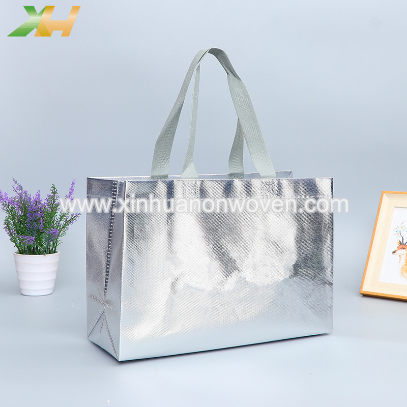 EXW, FOB, CNF, CIFשקית קניות פוליפרופילן מתכתית לא ארוגה עם לוגו מותאם אישית לקידום מכירות בסיטונאות