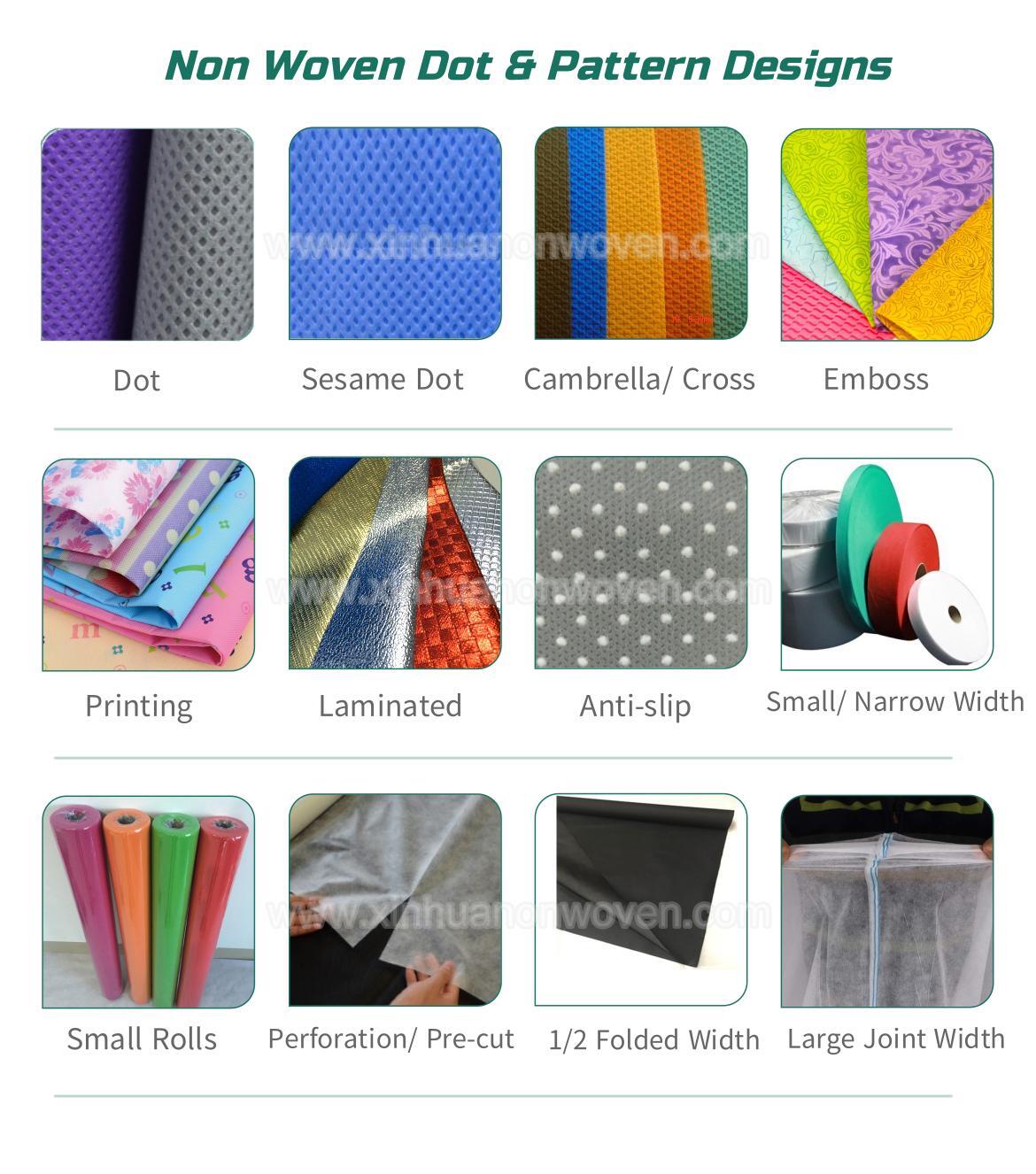 נכון לעכשיו, המפעל שלנו, XINHUA TEXTILE, יכול לספק ולייצר בד לא ארוג pp בנקודות ודוגמאות שונות.